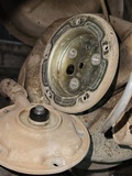 Tag acht und neun: Ein BKV überholt. Tag zehn und elf: Den zweiten BKV überholt. Beide waren mit Flüssigkeit drin. Ich habe den großen Satz verbaut. Alle Dichtungen waren mit dem Auge sichtbar und mit dem Messchieber messbar kleiner als die neuen. Die kleinen Kolben außen kamen mir schon entgegen, mit den neuen Dichtungen bleiben sie drin. Es war auch Gummiabrieb in den BKVs. Also alles saubergemacht, alles neu gedichtet. Da ich mit funktionierender Bremse (zumindest ein Kreislauf) auf den Hof gefahren bin, und der BKV dann kaputt war, muss er ja durch das Entlüften kaputtgegangen sein? Kann das sein? Ich habe in meiner Verzweiflung den Druck sukzessive erhöht, um noch Luft rauszubekommen. Ich bin dabei auf ~2,5 bar gegangen. Aber im Manual steht 2 Bar max. Also so viel drüber war ich da jetzt auch nicht. Tag zwölf: Wiedereinbau der BKV, gleich noch die Unterdruckschläuche neu gemacht. Tag dreizehn: Die beiden BKV mit dem Druckentlüfter neu befüllt, erst dann die oberen Leitungen festgemacht. Gleich mal versucht: Pedal immer noch weich, muss fünf mal pumpen bis hart bei ausgeschaltetem Motor. Aber immerhin kein durchfallen. Stand der Flüssigkeit in den Behältern markiert und auf den nächsten Tag gehofft. Tag vierzehn: Erster Hoffungsschimmer: Der Flüssigkeitsstand ist noch genauso wie vor vor 20 Stunden. Also immerhin das ist gefixt. Dann gings ans Entlüften. Ich habe drei Stunden lang den ersten Kreislauf mit 1,5 bar entlüftet: Jeweils ein Liter an den vorderen Zylindern, zwei Liter am hinteren. Einzelne Bläschen kamen raus, aber nicht soviel, wie ich gehofft (und nicht erwartet) Pedal war weiterhin weich, vielleicht musste man etwas weniger pumpen. Tag fünfzehn: Drei Stunden lang den zweiten Kreislauf mit 1,5 Bar entlüftet. Wieder vier Liter. Es kam auch hinten noch etwas Luft raus beim ersten Liter. Die Bremsbeläge habe ich ganz an die Trommeln angelegt, die lassen sich nicht mehr drehen. Dann Die Probe: Pedal läßt sich ca. 50% durchtreten mit leichtem Widerstand, bevor es hart wird. Dann noch zweimal treten, dann ist es nach 25% ganz hart. Müsste es nicht bei Belägen an den Trommeln und stehendem Motor komplett knallhart sein, fast ohne Weg? Ich weiß leider schon gar nicht mehr, wie es normal ist... Wie geht es jetzt weiter, soll ich nochmal entlüften morgen in der Hoffnung, dass es nochmal besser wird? Aber ich habe acht Liter durchgelassen, da kann doch keine Luft mehr drin sein? Wo kann ich denn noch schauen? | ||||